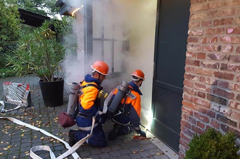 Das Ergebnis konnte sich sehen lassen. Viel künstlicher Nebel und Paletten-Feuer im hinteren freistehenden Bereich, ließen es ein wenig realistisch wirken, so dass die jungen Einsatzkräfte hinsichtlich der Einsatzatmosphäre voll auf ihre Kosten kamen.
