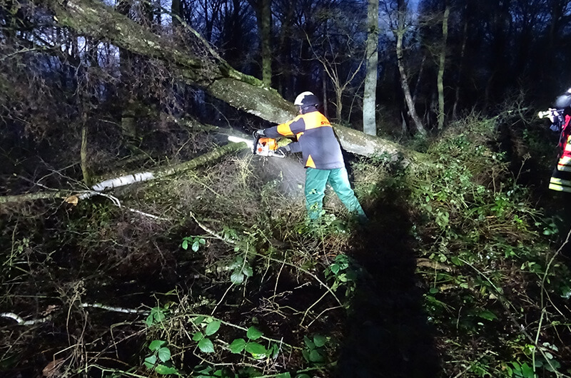 Der letzte Baum wurde von der Löschgruppe Rayen kurz nach 23 Uhr entschärft und rückte als letzte Einheit ein.