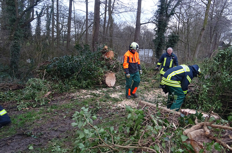 Friederike hatte Neukirchen-Vluyn relativ kurz und knapp in Atem gehalten und die Verwüstung waren recht glimpflich verlaufen, waren die Einsatzkräfte bis tief in den Abendstunden sowie in der Dunkelheit unter Ausleuchtung des Einsatzortes, damit beschäftigt, Gefahrenabwehr von einstürzenden Bäumen zu leisten.