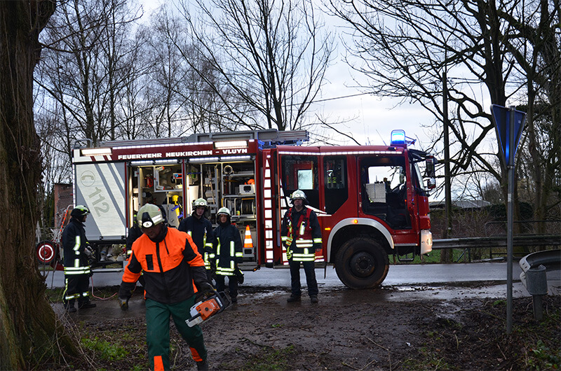 Um 10:56 Uhr wurde die komplette Feuerwehr Neukirchen-Vluyn von der Kreisleitstelle Wesel dazu befohlen, deren Gerätehäuser zu besetzen. Der Orkan „Friederike“ hatte schon Anlauf genommen und in Westeuropa eine Schneise der Zerstörung wie z.B. in den Niederlanden, hinterlassen.