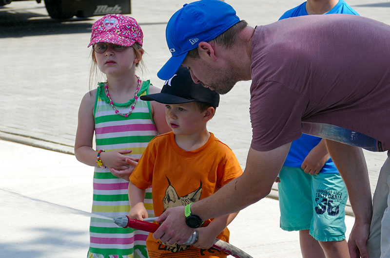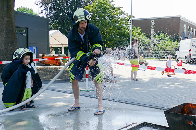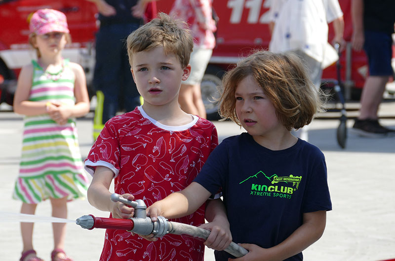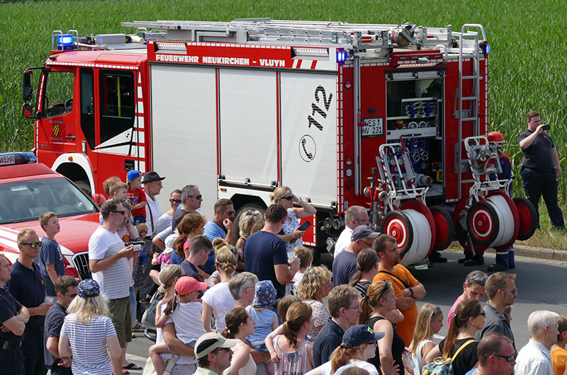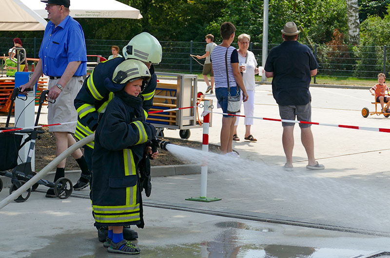 Ein voller Erfolg war der Brandschutztag und die gleichzeitige Einweihung ihres neuen Gerätehauses. Zum ersten Mal wurde der Brandschutztag im neuen Gerätehaus und auf dem Areal des Löschzug Neukirchen gefeiert. Hier konnte sich platztechnisch gesehen, der Löschzug ringsherum und in der Halle komplett entfalten. Platzmangel weit gefehlt aber bei der hohen Hitze wurde für reichlich Schatten gesorgt und der Getränkewagen wurde doppelt besetzt, sodass alle schnellstens versorgt werden konnten. Stationen für die Kinder wie z. B. Schlauchkegeln, Hüpfburg in der Halle und kleine Gokarts aus dem Spielmobil sorgten für die Unterhaltung, waren reichlich vorhanden und gut besucht.