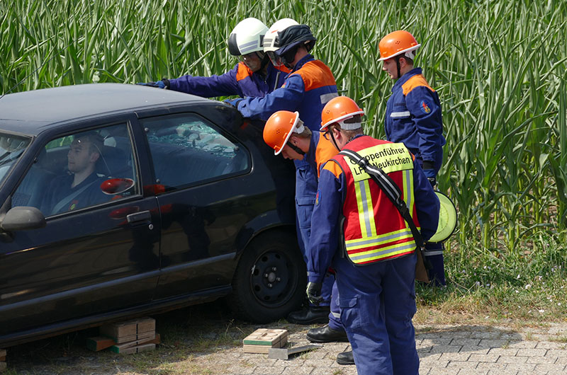 Unerwähnt sollte die Jugendfeuerwehr der FFNV auch nicht bleiben. Sie glänzte nicht nur durch ihr leckeres Kaffee- und Kuchenbuffet sondern durch ihre perfekt abgestimmte Einsatzübung am Nachmittag. Hier zeigten sie in Zusammenarbeit mit dem Rettungsdienst, eine technisch Hilfeleistung. Eine in einem Fahrzeug eingeklemmte Person musste befreit werden. Geschickt mit Spreizer und Schere wurde diese dann rausgeschnitten und anschließend patientengerecht gerettet.