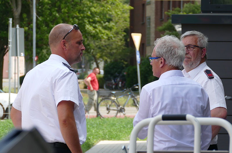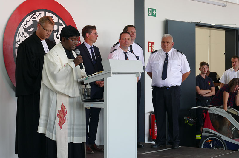 Der evangelischen Pfarrer Frank Rusch und Pastor Pasupula Suneel Kumar der katholischen Gemeinde sendeten christliche Worte und den Segen für die Feuerwehr. Der Vorstand des Förderverein der Feuerwehr Neukirchen-Vluyn Bernhard Uppenkamp untermalte die Wichtigkeit der Feuerwehr und natürlich auch die des Fördervereins, wo jeder Mitglied werden kann.