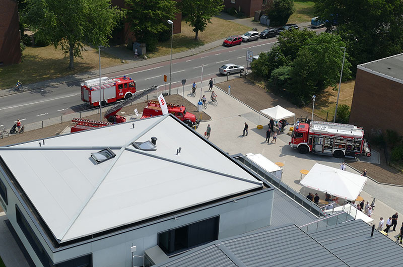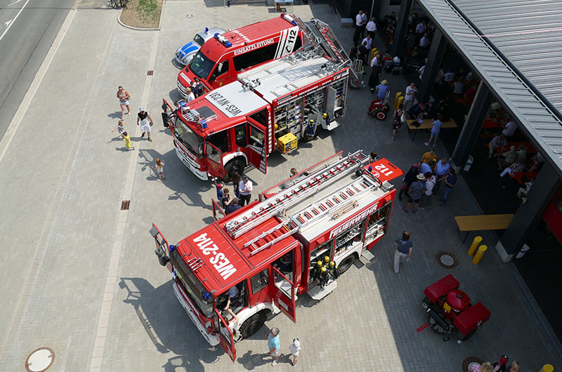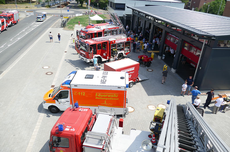 Die zeremonielle Einweihung des neuen Gerätehauses wurde durch unseren Bürgermeister Harald Lenßen eingeläutet. Hier blieb nicht unerwähnt, wie viel Zeit- und Kraftaufwand durch das Personal Stadt, Feuerwehr, Bauunternehmen usw die der Bau des neuen Gerätehauses mit sich führte. Strapazen, Wasserschaden, Flexibilität und natürlich für die Bürger der Stadt Neukirchen-Vluyn nicht uninteressant, die Kosten, die für die Entstehung der Feuerwache aufkamen, blieben hier nicht unerwähnt. Auch die Förderung von 1 Millionen Euro durch das Land NRW waren wahrlich eine sehr gute finanzielle Spritze für das Bauvorhaben, was zur Entspannung des kommunalen Haushaltes zu Gute kam.