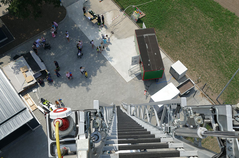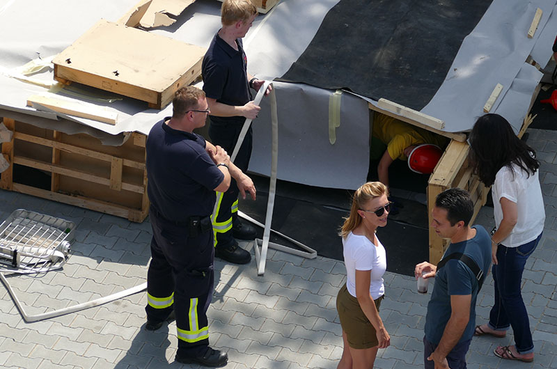 Die Kleinen standen den Großen in nichts nach. Hier wurde der berühmt-berüchtigte Feuerwehrparcour für Kinder (kindgerecht) angeboten. Wie richtige Feuerwehrmänner- und frauen konnten die Kids unter fast realen Einsatzbedingungen durch Feuer (LED-flackernde Lichter) und verrauchte (Kunstnebel) Gänge kriechen.