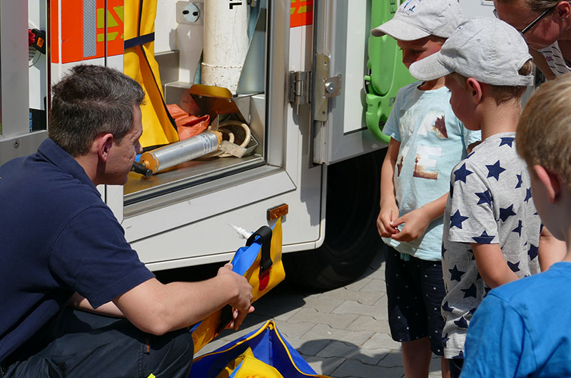 • Ein Rettungsassistent erklärt den Kindern den Krankenwagen