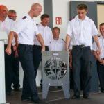 Der Bürgermeister überreichte traditionell und symbolisch den Schlüssel vom neuen Gerätehaus an den Wehrführer und Standbrandinspektor Lutz Reimann. Lutz Reimann ließ nicht lang auf sich warten und erklärte offiziell das fast 20-jährige Bauvorhaben „Gerätehäuser Neukirchen-Vluyn“ für beendet.