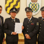 Der Leiter der Freiwilligen Feuerwehr Neukirchen-Vluyn, Stadtbrandinspektor Lutz Reimann, wurde grade selbst letztes Jahr in die 4. Amtsperiode gewählt und hält somit seit über 18 Jahren das Amt inne, überreichte gemeinsam mit Bürgermeister Harald Lenßen und mit Stadtbrandinspektor Markus Heimberg, stellvertretender Leiter der FFNV, feierlich im Rathaus die Urkunde an Thorsten Eckhardt.