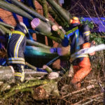 Auf der Lintforter Straße wurde ein vorbeifahrendes Auto von einem fallenden Baum getroffen. Das Fahrzeug überschlug sich daraufhin. Der Fahrer konnte sich selber befreien und kam mit dem Schrecken davon. Auslaufendes Betriebsmittel wurden mit Bindemittel aufgenommen.