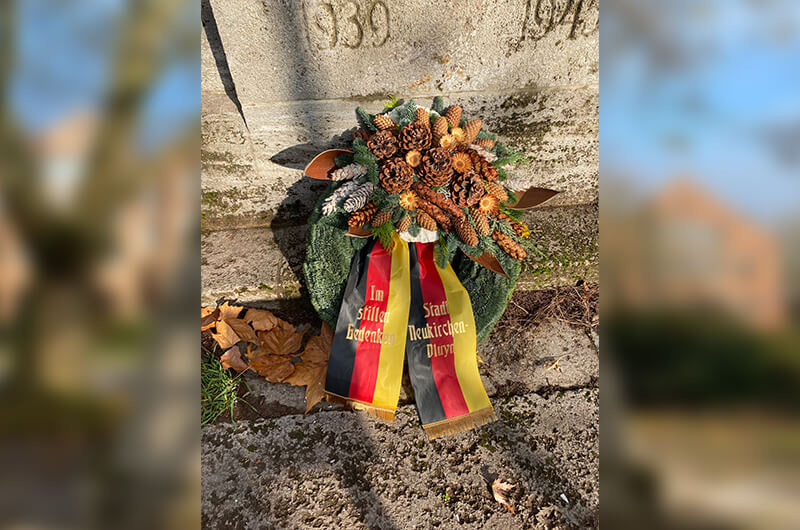 Aus diesem Grund gedachte die Freiwillige Feuerwehr Neukirchen-Vluyn am Sonntagmorgen zusammen mit dem Heimat- und Verkehrsverein an die Opfer und Toten. Traditionell legte die FFNV in Neukirchen, in Vluyn und in Rayen an den bekannten Denkmälern Kränze nieder.