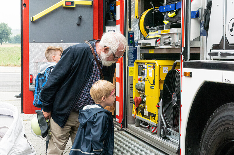 Die Gerätschaften der Feuerwehrfahrzeuge waren ein besonderer Reiz für technisch Interessenten. Schere, Spreizer, Atemschutzgeräte und vieles vieles mehr konnte man in Augenschein nehmen. Fragen wurden durch die Wehr selbstverständlich gerne beantwortet. Die Kids tummelten sich im Mannschaftsraum oder gar mal hinter dem Lenkrad. Manch einer hat so schon seinen Traumberuf bei der Feuerwehr gefunden.