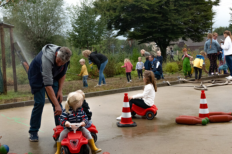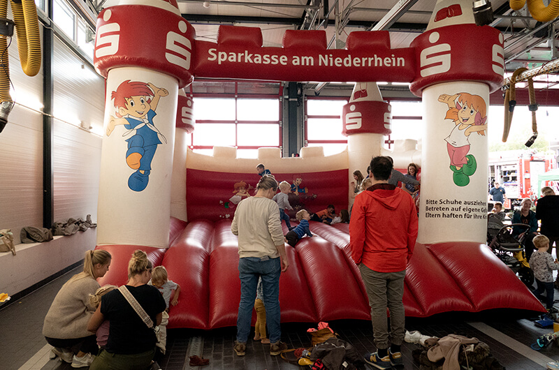 Alternativ konnten die Jungen oder Mädchen sich ihre Gesichter bemalen lassen und sich als z. B. Löwe oder Katze auf dem Kinderspiel-Parcours auf einem Bobby Car austoben. Der Renner unter den Kleinen: die Hüpfburg! Da wurde gehüpft bis so manches Kind müde wurde. Die Eltern hat’s gefreut. Für die Großen gab es geführte Rundgänge im neuen Gerätehaus.