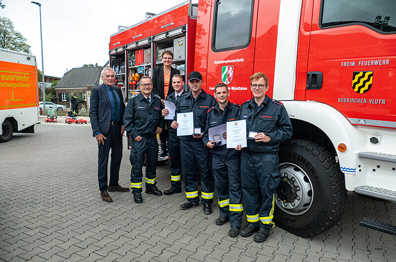 Einige Einsatzkräfte des LZN wurden, wie auch ihre Kameraden aus den anderen Einheiten wurden feierlich mit der Feuerwehr- und Katastrophenschutz Einsatzmedaille inkl. Urkunde ausgezeichnet. Sie hatten im vergangenen Jahr bei der Flutwasserkatastrophe im Ahrtal geholfen.