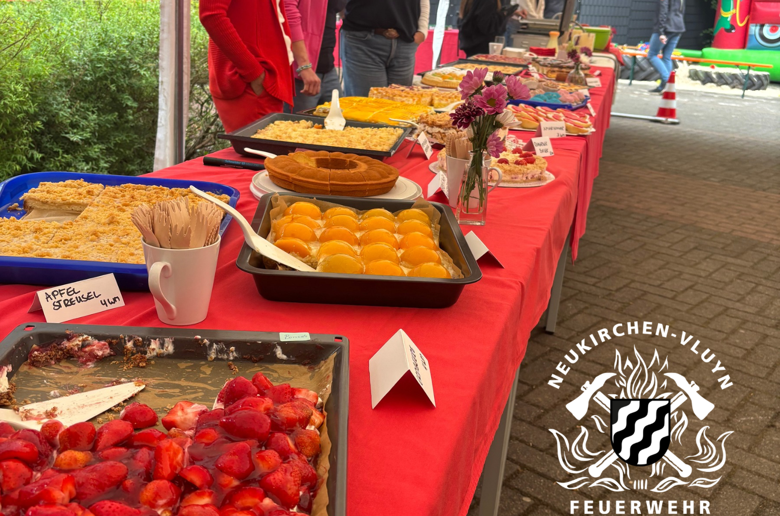 Für das leibliche Wohl war ebenfalls bestens gesorgt: Ein Kuchenstand bot selbstgemachte Kuchen und frische Waffeln an. Außerdem war ein Holzkohlengrill mit Zwiebelfleisch und Würstchen im Einsatz. Ein Bierwagen versorgte die Gäste mit kühlen Getränken.