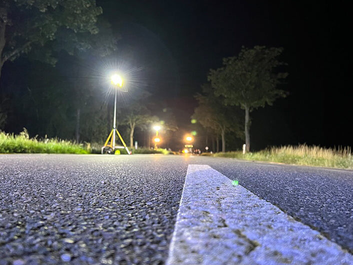Nachdem die Einsatzstelle großflächig ausgeleuchtet wurde, wurden mithilfe der Drehleiter Luftaufnahmen von der Unfallstelle gemacht. Im Anschluss kam im Zuge der Unfallanalyse eines Sachverständigen auch eine Drohne zum Einsatz.
