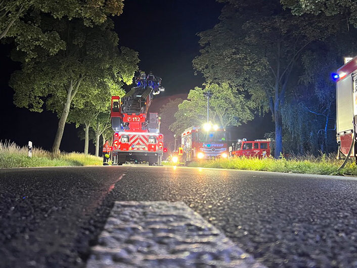 Fahrzeuge: KdoW LdF, LF 20-1 Neukirchen, RW Neukirchen, LF 20 KatS Neukirchen, MTF Neukirchen, DLK 23/12 Vluyn, LF 10 Niep, MZF Niep