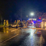 mt waren. Die Einsatzkräfte leuchteten die Einsatzstelle großräumig aus, streuten auslaufende Betriebsmittel ab und klemmten die Baterie des betroffenen PKWs ab. Außerdem wurde eine verletzte Person nach Erstversorgung an den Rettungsdienst übergeben.