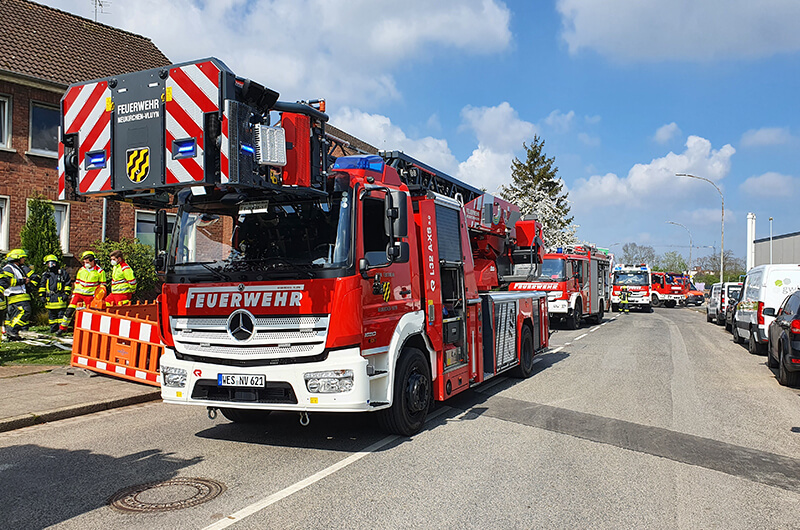 Am Donnerstagmittag wurde die gesamte Feuerwehr Neukirchen-Vluyn zu einem Feuer mit Personen in Gefahr alarmiert. Der Kreisleitstelle wurde ein Küchenbrand gemeldet, eine Person sollte sich noch in der Wohnung befinden.