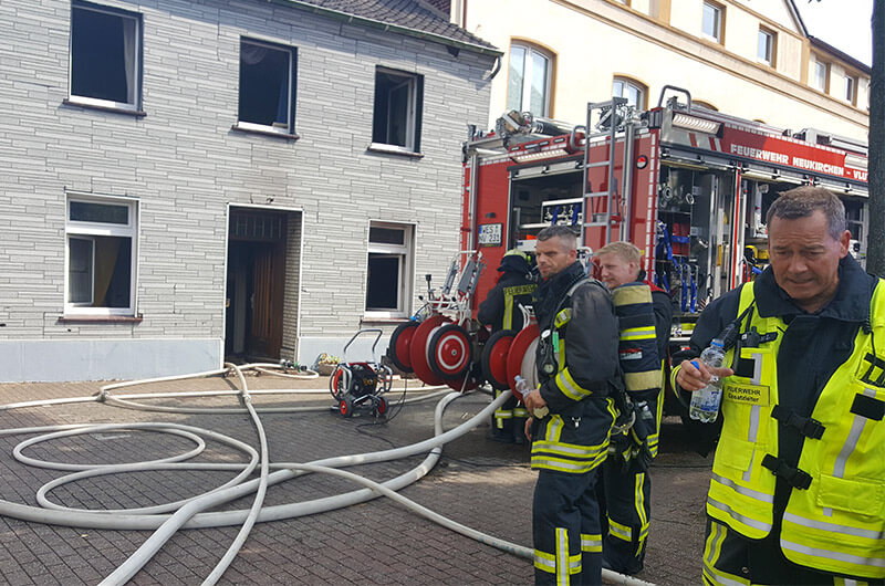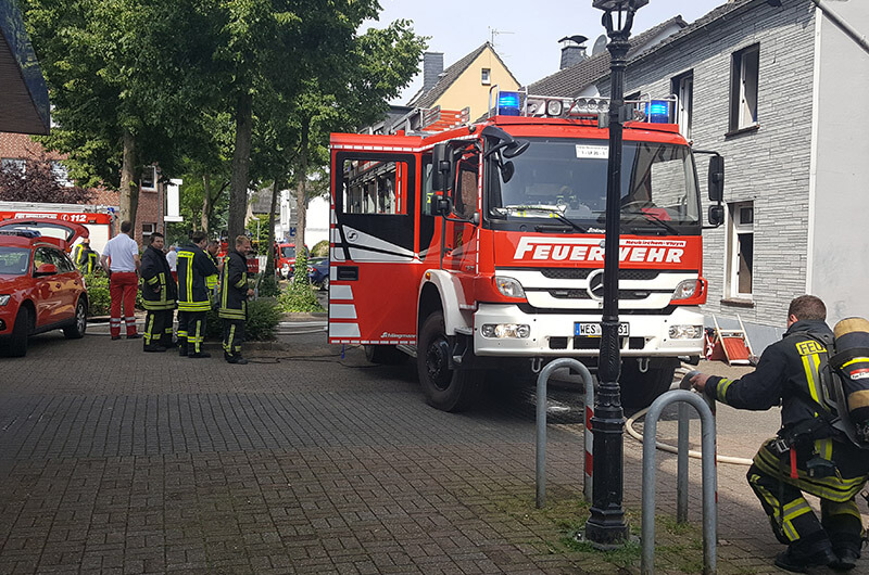 Mit dem Einsatzstichwort „Feuer Personen in Gefahr“ wurden um 10:20 Uhr alle Einheiten der Feuerwehr Neukirchen-Vluyn, sowie der Rettungsdienst alarmiert.