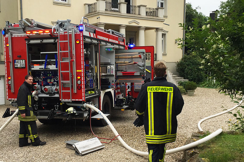 Fahrzeuge: KdoW LdF, ELW 1 Neukirchen, LF 20-1 Neukirchen, LF 20-2 Neukirchen, RW Neukirchen, MTF Neukirchen, HLF 20 Vluyn, DLK 23/12 Vluyn, TLF 3000 Vluyn, MTF Vluyn