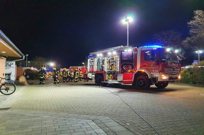 Bei Eintreffen der Feuerwehr hatten alle Personen das Gebäude verlassen. Sofort ging ein Trupp unter Atemschutz vor und kontrollierte die Räumlichkeiten mit einem Gaswarngerät. Gleichzeitig wurde das Gebäude mit einem Hochleistungslüfter gelüftet.