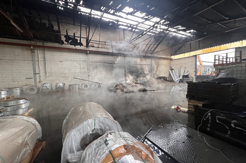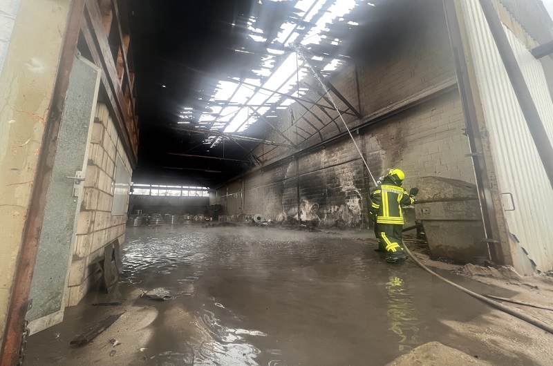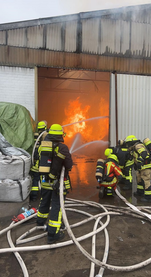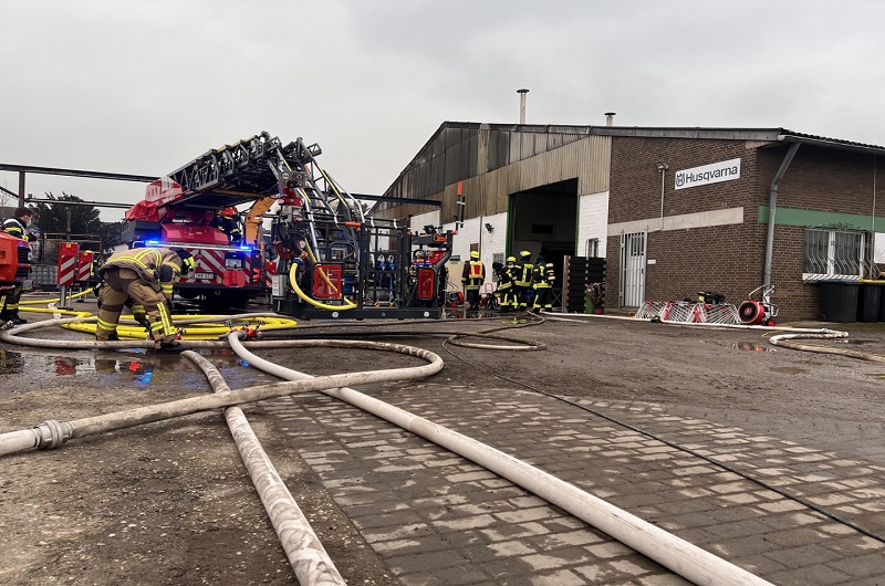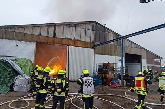 Am Dienstagmittag gegen 11:56 Uhr wurde die gesamte Feuerwehr Neukirchen-Vluyn zu einem Gewerbebrand auf die Fritz-Baum-Allee gerufen. In einer Lagerhalle kam es aus bisher ungeklärter Ursache zu einem Metallbrand. Bereits auf der Anfahrt war eine starke Rauchentwicklung sichtbar. Bei Eintreffen der ersten Einsatzkräfte stand ein Teil einer Lagerhalle in Vollbrand und drohte auf den Rest der Lagerhalle überzugreifen.