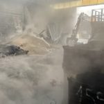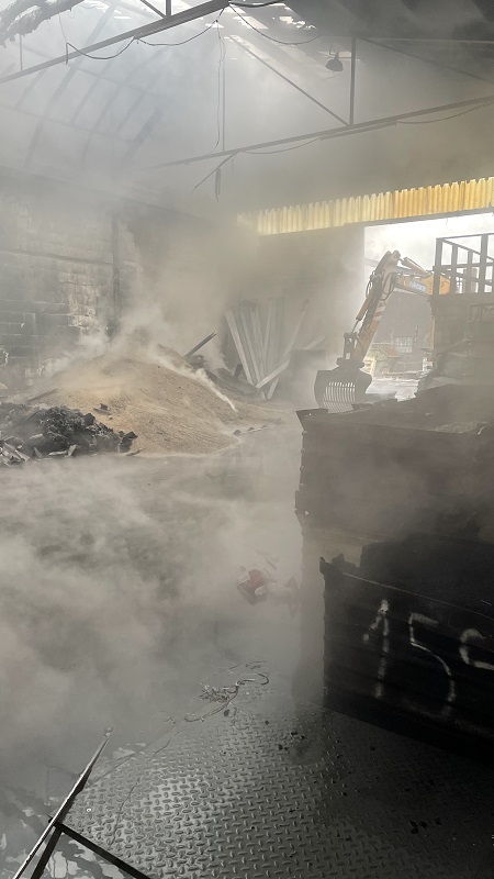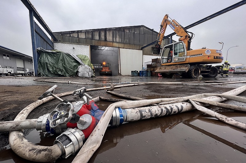 Nachdem das Feuer unter Kontrolle war, wurde das Brandgut mit den Radladern aus der Halle gefahren. Zeitgleich wurde die gesamte Halle mit mehreren Hochleistungslüftern vom Rauch befreit.
