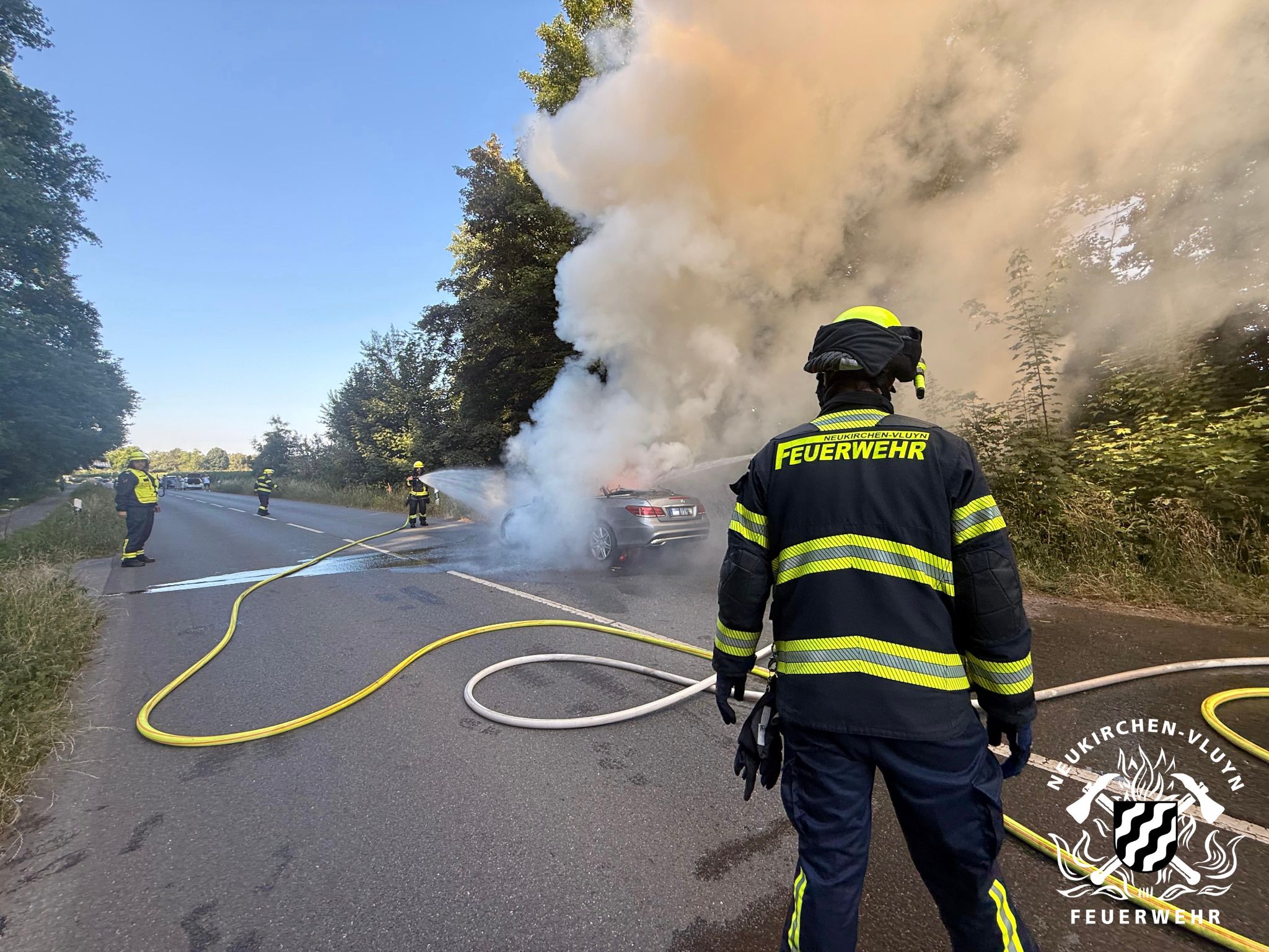 Am Dienstagabend wurde der Löschzug Vluyn gegen 18:21 Uhr zu einem brennenden Pkw auf der Neufelderstraße alarmiert. Bereits auf der Anfahrt war eine deutliche Rauchentwicklung sichtbar.