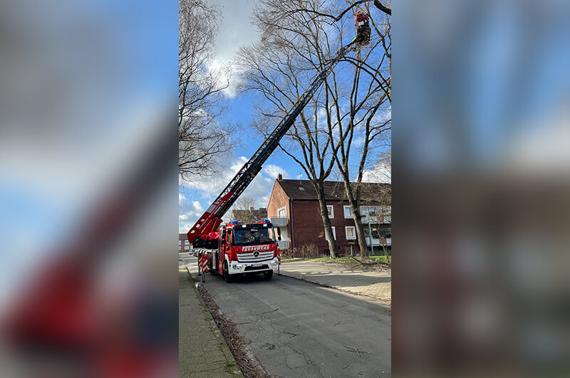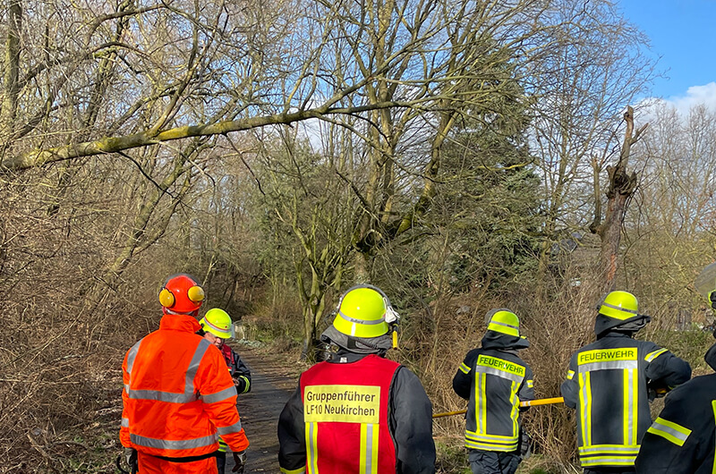In Rayen wurde ein umgestürzter Baum an der Kreuzung Lintforterstraße/Geldernschestraße ebenfalls mit der Kettensäge beseitigt, während auf der Krefelderstraße Höhe Wittrahmsweg zwei Gefahrenbäume auch hier durch die Kettensäge und der Seilwinde vom Rüstwagen entfernt wurden.