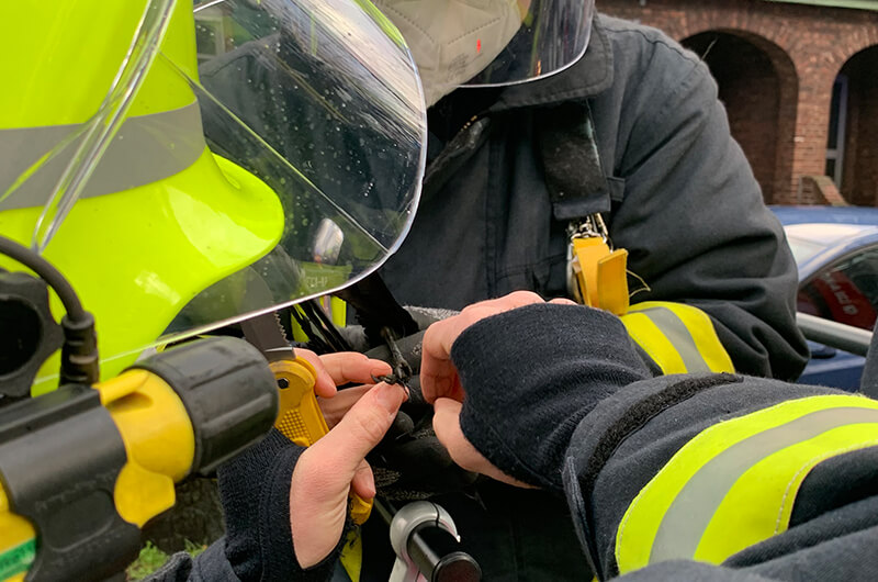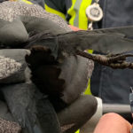Die FFNV wurde bei dem stürmischen Wetter mal zu einem tierischen Einsatz gerufen und kam auch schon geflogen. Eine Krähe hatte sich im Geäst eines Baum in einer Höhe von ca. 7 m verfangen. Im ersten Augenschein waren die genauen Umstände nicht klar, warum sich das gefiederte Tier dort verfangen hatte. Eine hinzugerufene Drehleiter und ein Trupp schaffte Klarheit. Das arme Tier hatte sich mit seiner Kralle, sich an einer am Ast befindlichen Angelschnur verfangen. Das scheue Tier wurde aus der verwickelten Situation befreit.