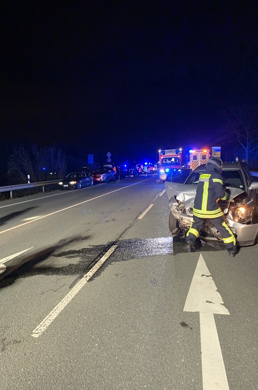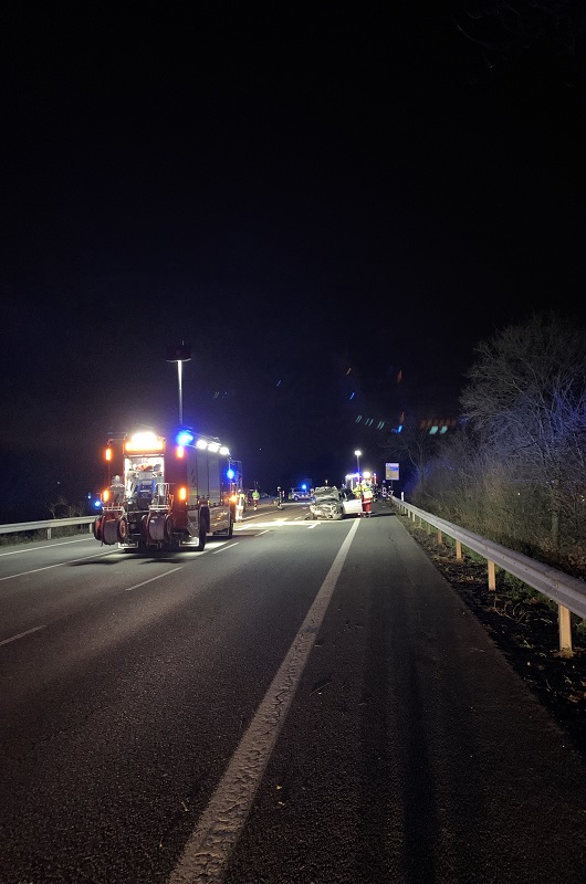 Parallel zu der Suche wurden an beiden PKWs die Batterien abgeklemmt und auslaufende Flüssigkeiten mit Bindemittel abgestreut. Zusätzlich wurde die Unfallstelle großräumig ausHLF 20geleuchtet.