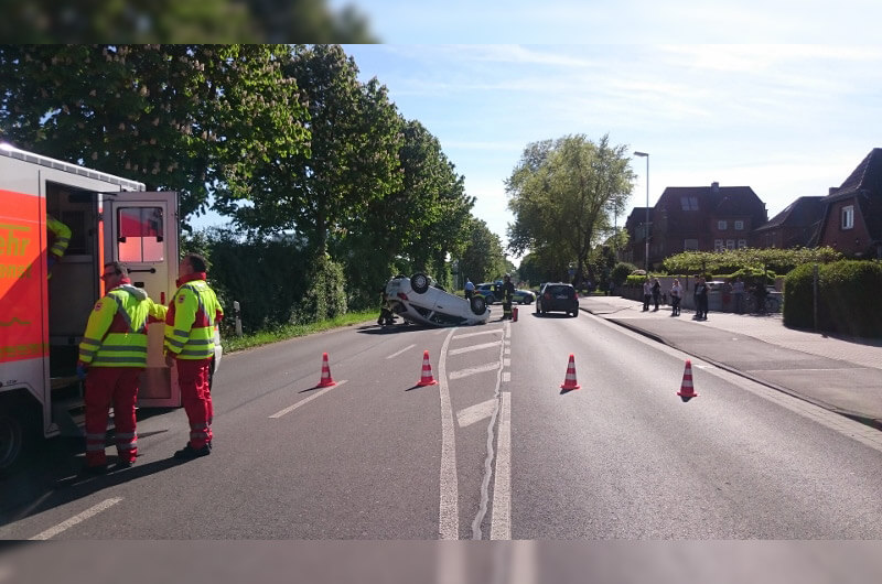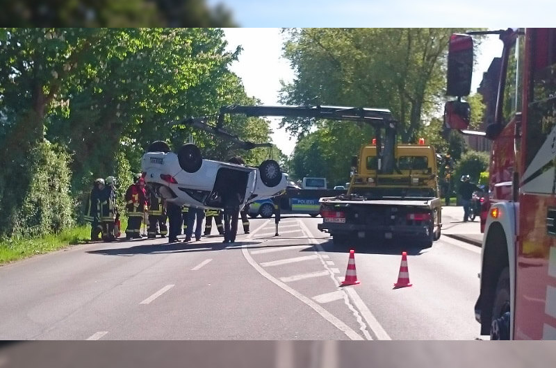 Ein Pkw hatte sich überschlagen und lag auf dem Dach.